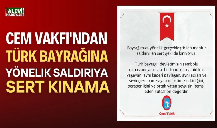 Cem Vakfı Genel Merkezi, son dönemde Türk bayrağına yönelik gerçekleştirilen menfur saldırıyı en sert şekilde kınadığını duyurdu. Vakıf, yayımladığı resmi açıklamada, Türk bayrağının yalnızca devlet sembolü olmadığını, aynı zamanda milletimizin birliğini, beraberliğini ve ortak vatan sevgisini temsil eden kutsal bir değer olduğunu vurguladı.